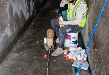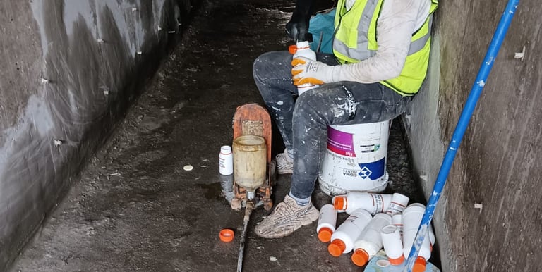 نقوم بأعمال معالجة النضوح في الكونكريت باستخدام مواد الحقن الرطب لضمان الجودة والمتانة.